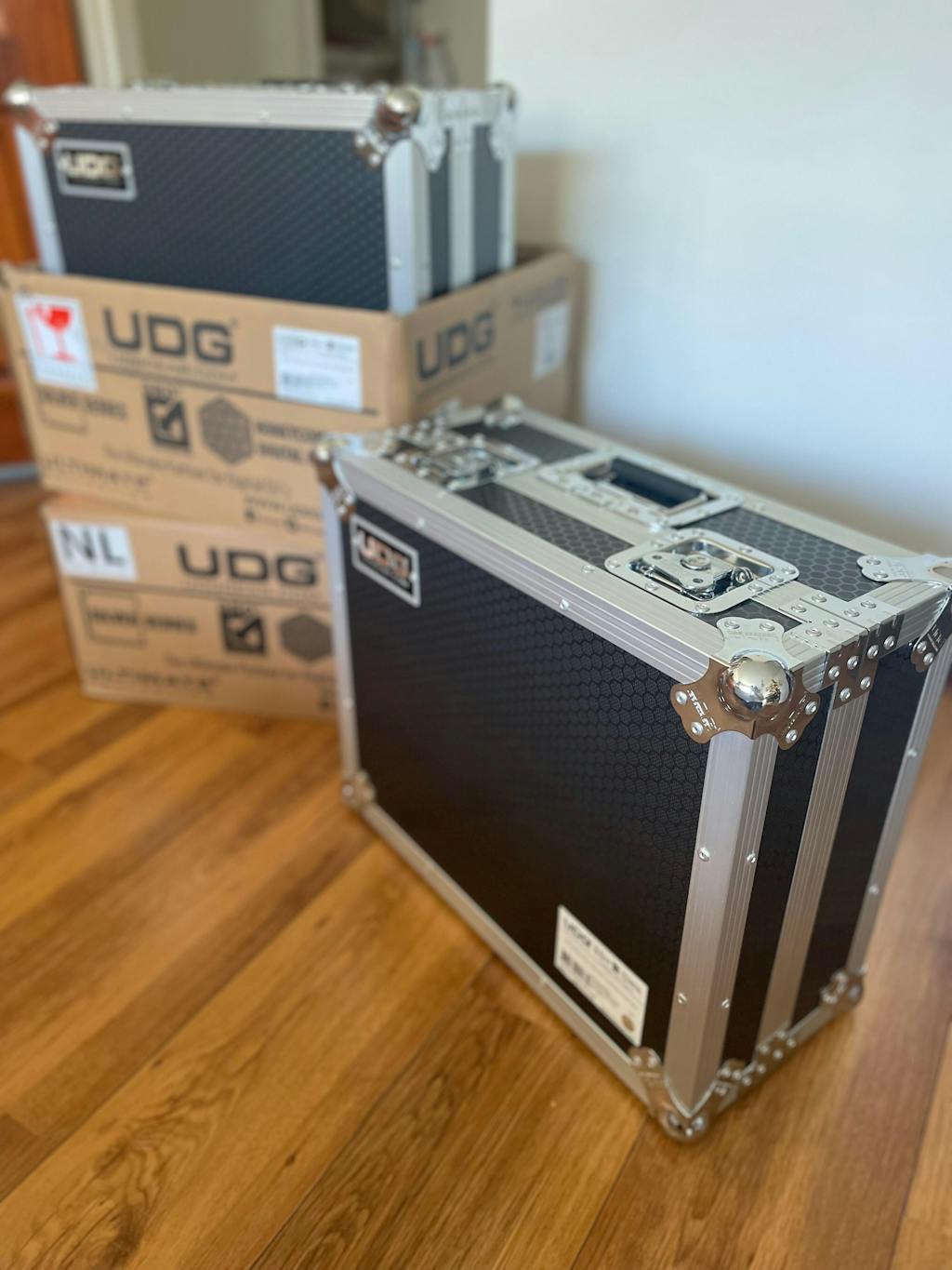We, at UDG have further fined-tuned already a great design concept of our flight case into one specially for the most discerning DJ/producer. Constructed from solid 9mm thick plywood, the outside is laminated in a black finished honeycomb/hexagonal "Stage Grip" pattern. The inner sides are protected with high density diamond embossed EVA foam protective padding. This extremely robust padding protects the equipment against scratches, dust or other damages, creating a unique stylish & practical finish.